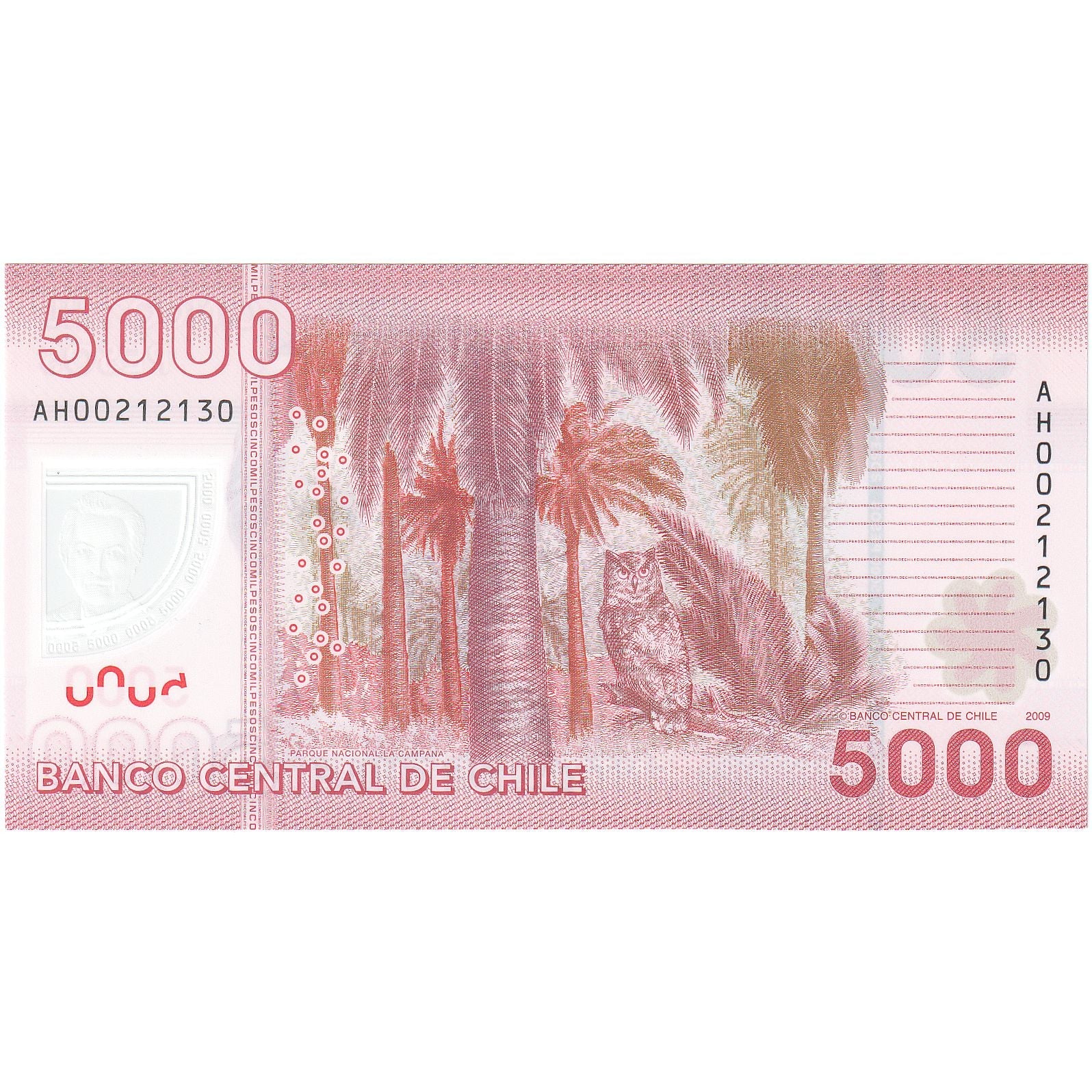 Gabriela Mistral de frente al centro. Palmeras chilenas en el Parque Nacional La Campana; ave Tucúquere. Rosa sobre fondo azul.