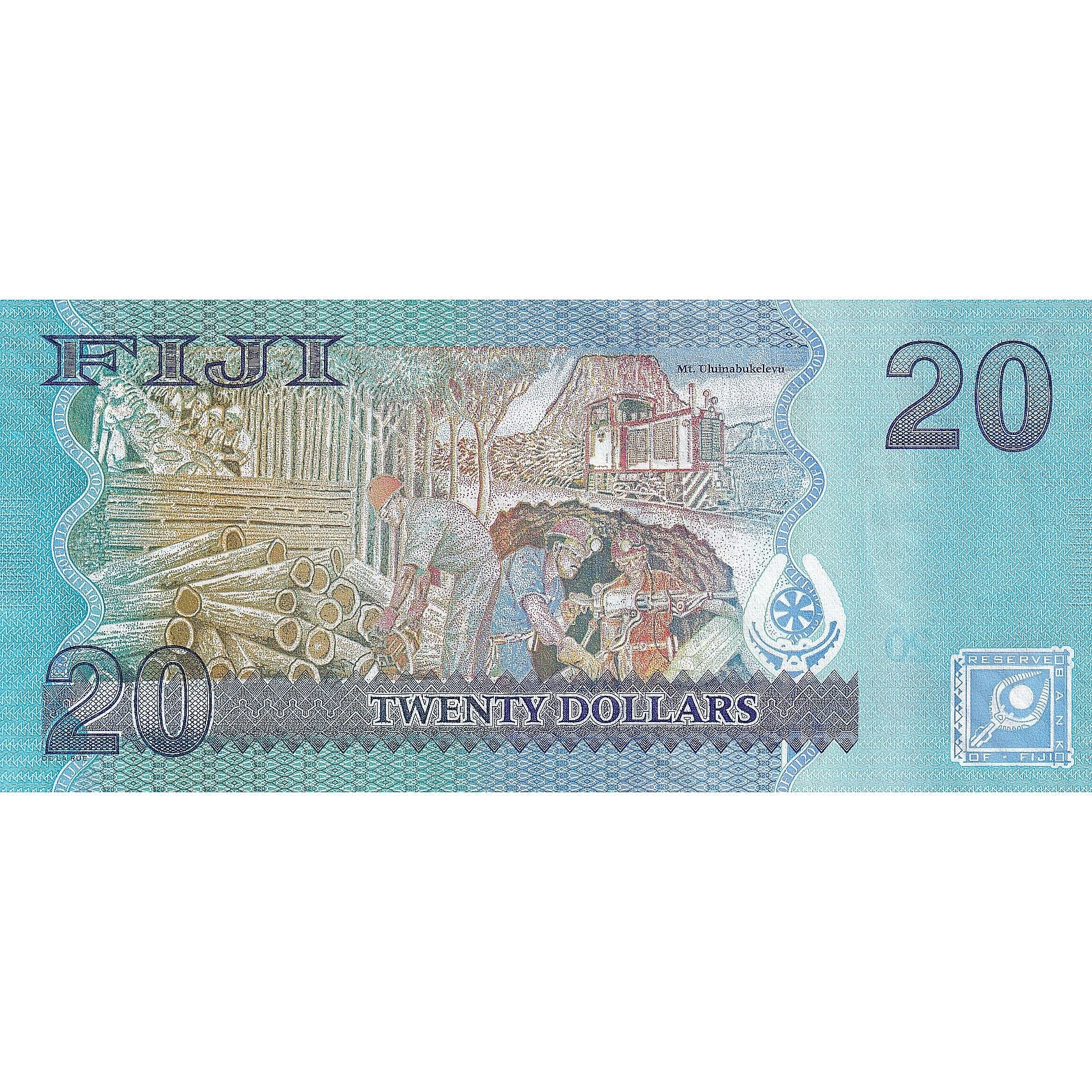 Tala de árboles y monte Uluinabukelevu. Azul sobre fondo multicolor.